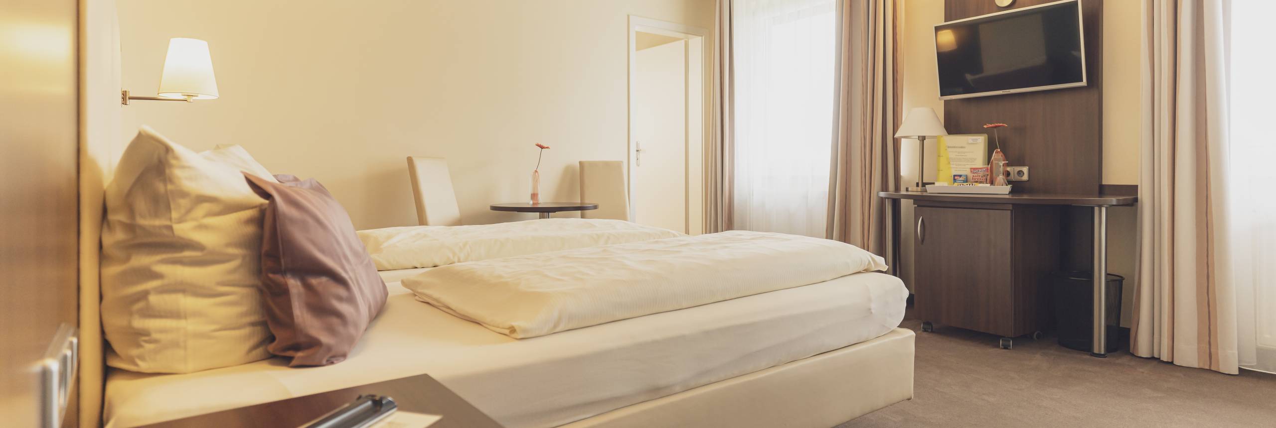 Unser Hotel bietet Ihnen komfortable Zimmer, die alle mit Dusche/WC, Föhn, Kosmetikspiegel, Minibar, sowie Flachbild-TV ausgestattet sind. Gerne können Sie über einen Gastzugang mit Ihrem Laptop kostenfrei im Internet surfen.